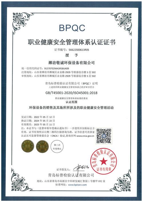 職業(yè)健康安全管理體系認(rèn)證證書