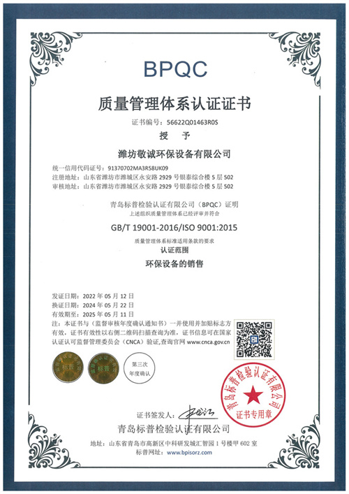 質(zhì)量管理體系認(rèn)證證書(shū)